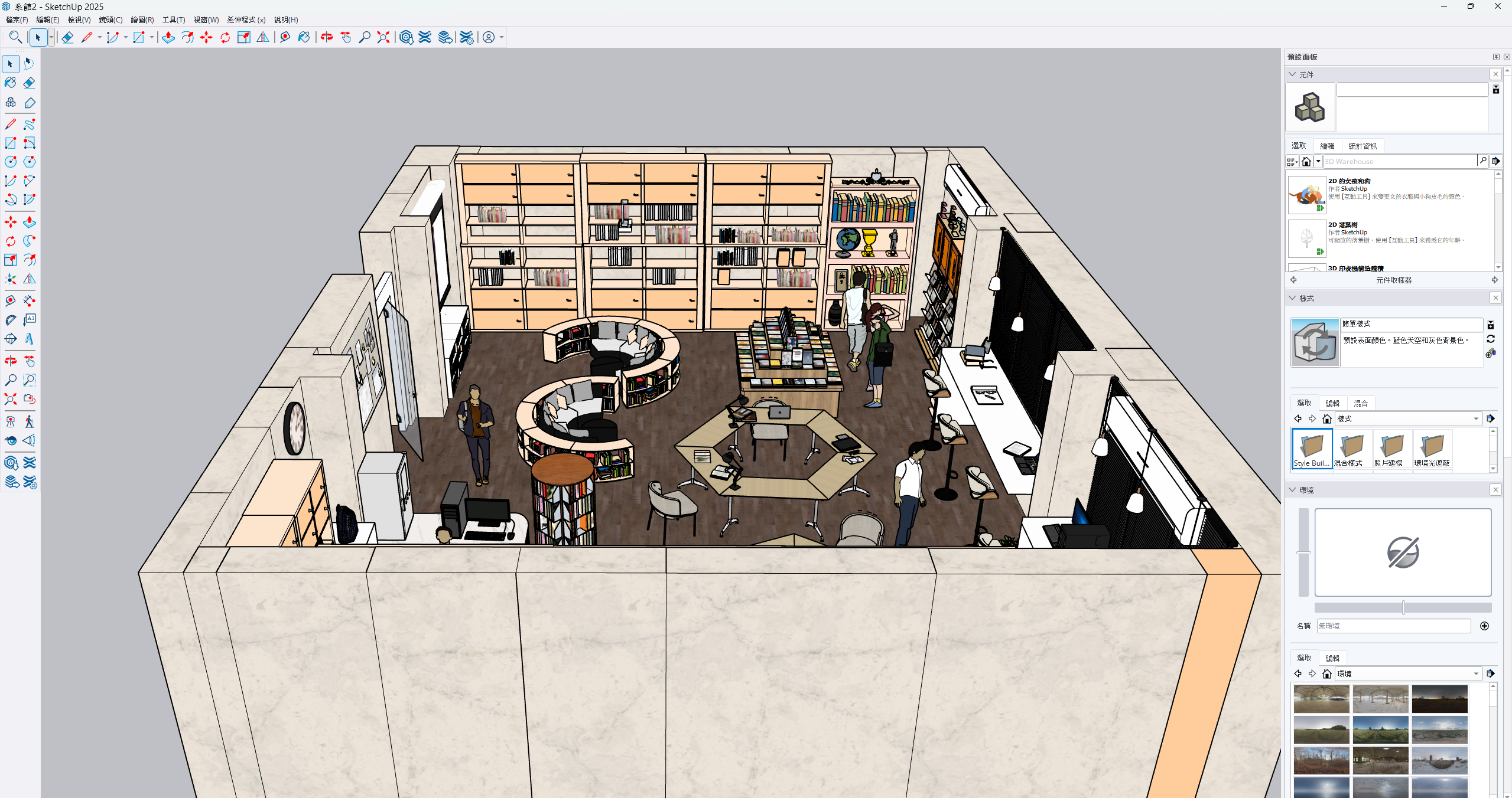 以模組化書櫃與動線設計為核心,打造兼具展示與互動的學習場域。